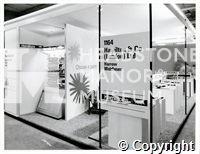 Black and white photograph of Hamilton & Co.(London)'s exhibition stand at an exhibition. Labelled on back 'Photo by APEX PHOTOS LTD and the address.' and a handwriting mark reference BX 36/1. It looks like is the same exhibition as 2023:12.448.